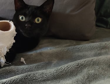 She is a fixture of the house, a small shadow whose greatest thrill is to explore to the highest point she can find—whether it’s the top of the fridge, a high closet shelf, or just hanging out with mom in the kitchen from the counter. She looks forward to every delivery because it means a fresh, new cardboard castle to explore.