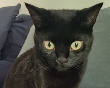 Luna has lived all of her wonderful six years on Stratton Drive, and in all that time, her whole world has revolved around a half-mile radius of home—and her Mommy. Their bond was instant; a true "love at first sight" moment where Luna absolutely chose her person. She is a small, still very kitten-like in appearance, with stunning, big, round eyes that truly look like the reflection of the moon.
